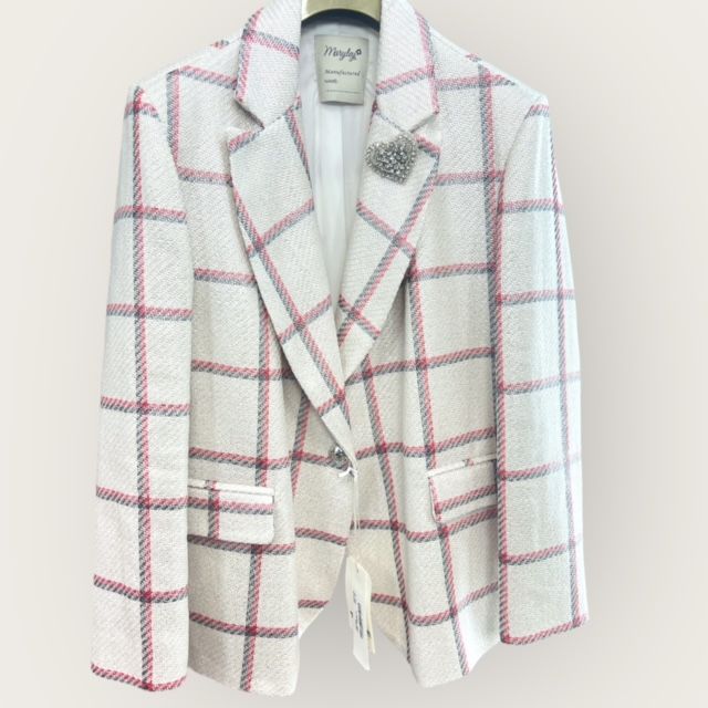 Giacca Atelier over a quadri con spilla